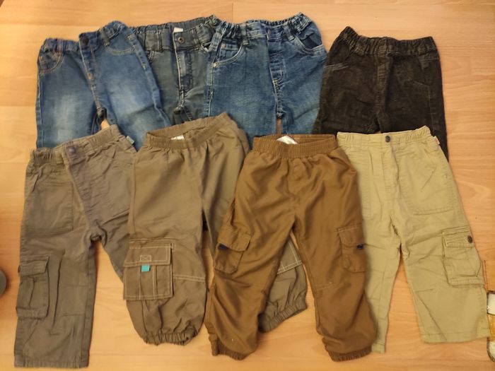 4 jeans + 4 pantalons tissus dans les tons beige, très bon état.
