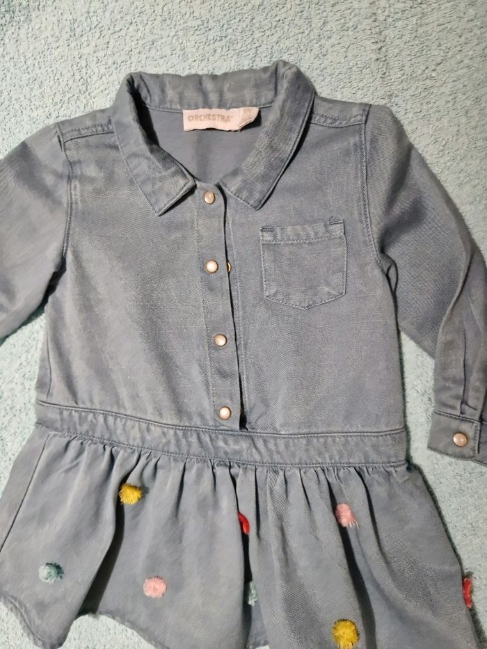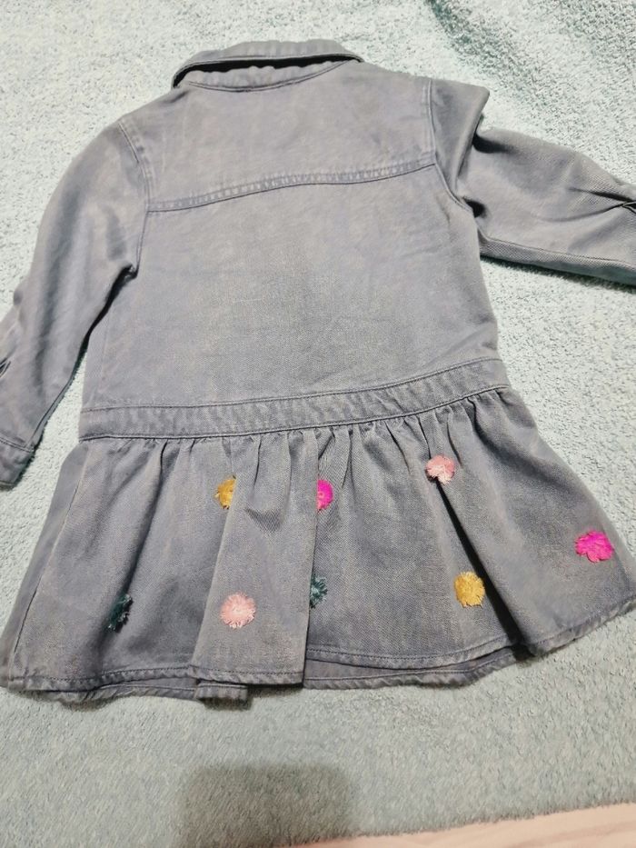 Robe manche longue 9 mois 71 cm effet jean verte. Jamais portée avec quelques petits pompon de différentes ouleurs