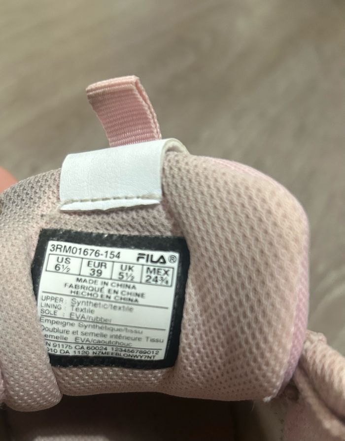 Basket FILA rose et blanche, pointure 39. Bon état.