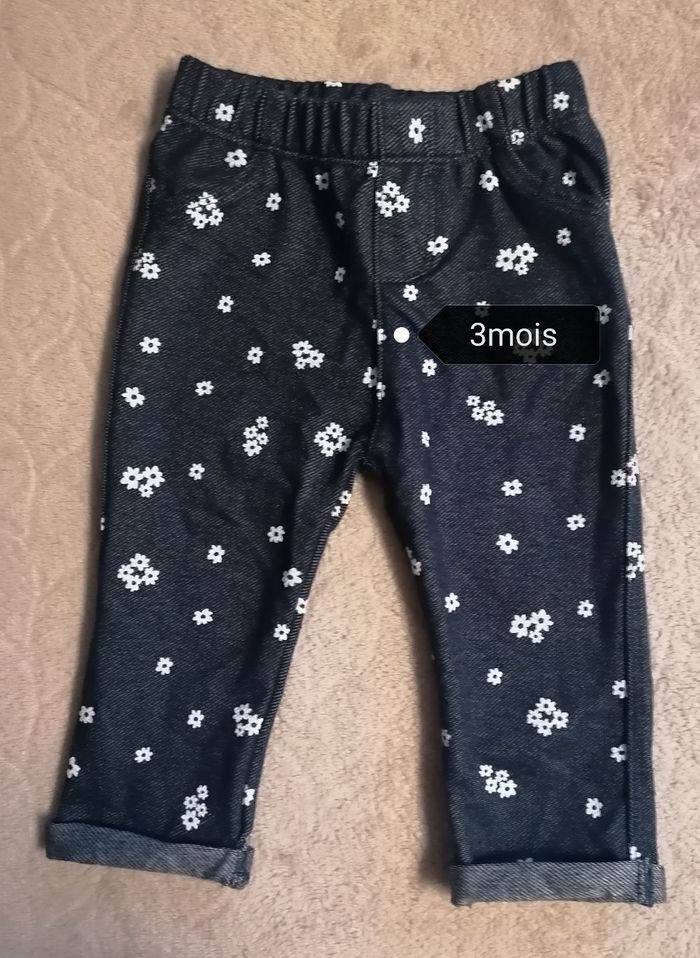 Caleçon fleuries Inextenso Age 3mois (62cm) Taille élastique, non réglable 69%coton. 26%polyester. 5 %elasthane. 2 fausse poches sur les côtés. Portée 2fois. 3€