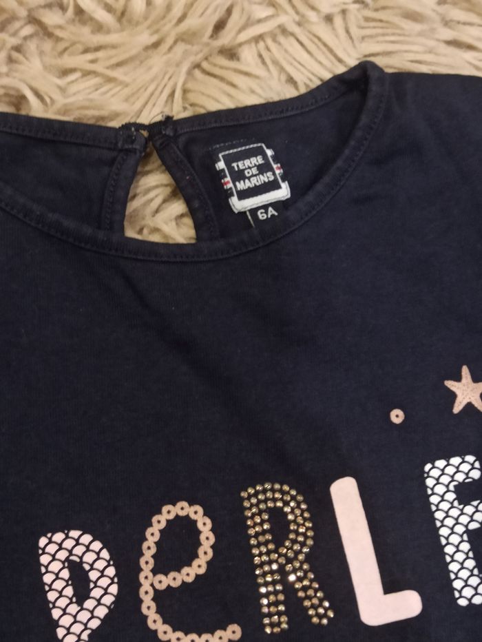 T-shirt manches courtes Bleu marine, perle des mers. Taille 6 ans Terre de marins #liibysixans #6ans #ete #haut #tshirt