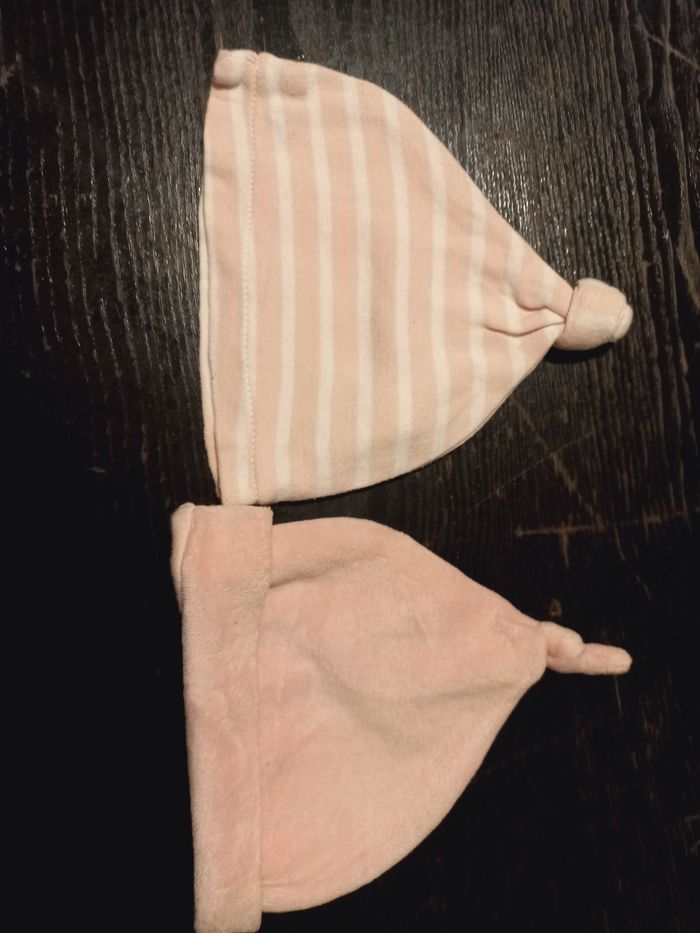 2 bonnet pour enfant 1 mois, en très bon état, couleur rose, marque kimadi.