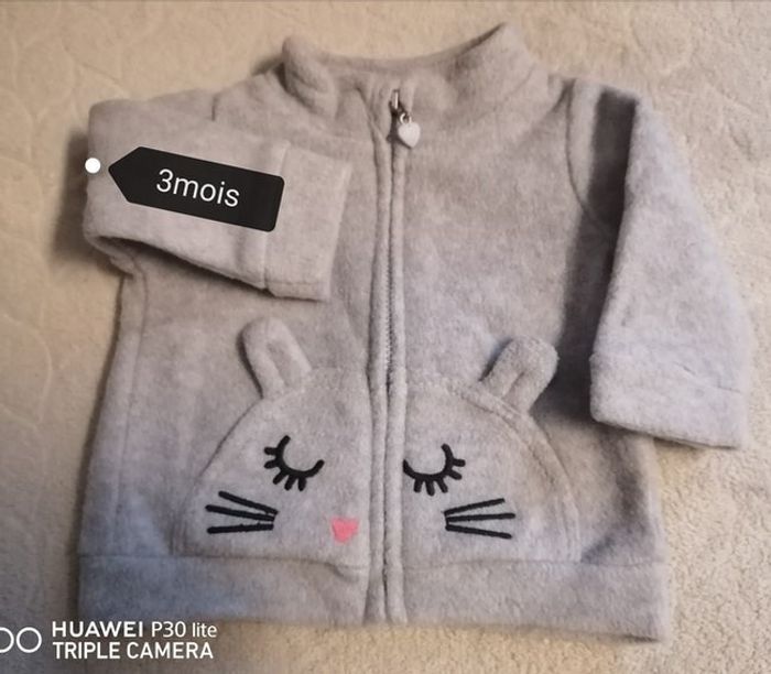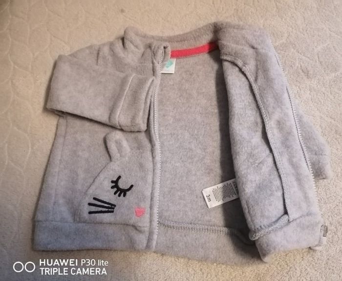 Veste polaire bébé filles Marque tex baby Age 3mois ( 62cm) Couleur gris Fermeture zippée 2 poches sur les côtés Matière :100 %polyester Portée une fois 3.50€