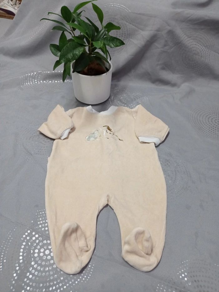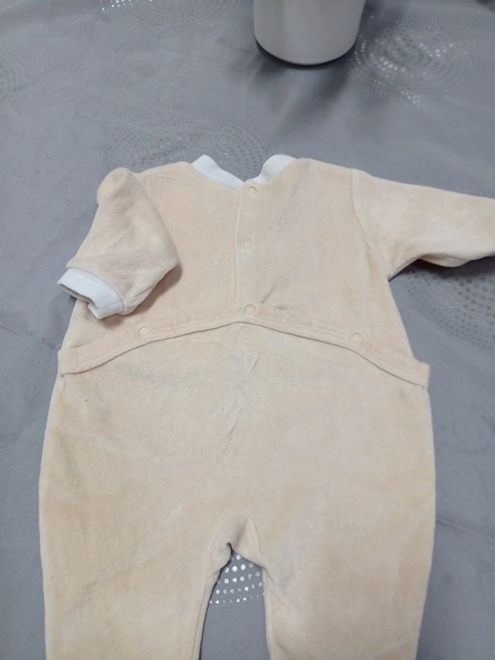 #3moisgarcon_tania51100 #3moisfille_tania51100 Réduction activée dès 2articles. Tout est rangé par âge / catégorie dans mon dressing (jouets,puériculture, garçon,fille..) Maison non fumeurs et sans animaux Petit pyjama velours. Couleur crème Très bon état. Pas tâches pas trous