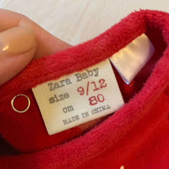 Pyjama de noël marque Zara en très bon état Taille 9/12 mois - 80 CM Couleur rouge Pyjama en velours Pompon sur le derrière en relief D’autres pyjamas disponibles sur mon profil