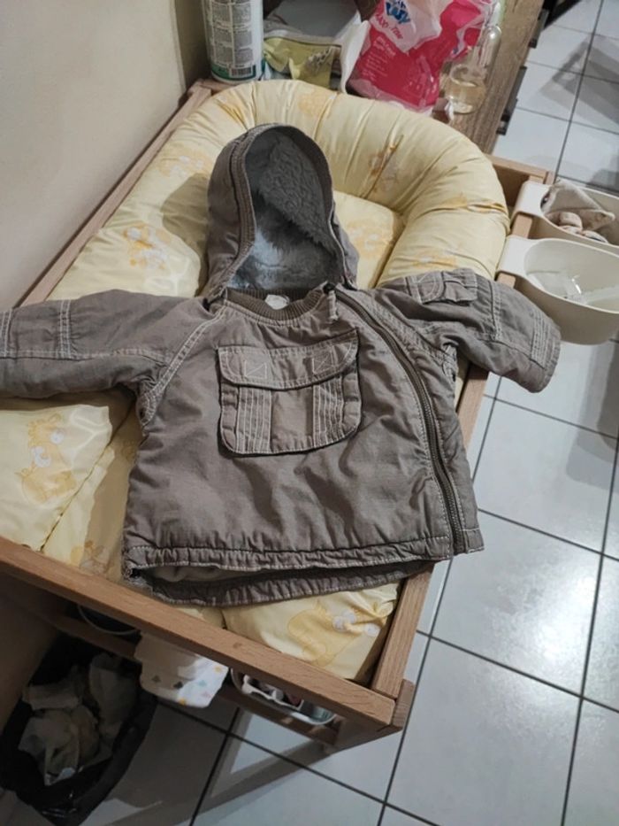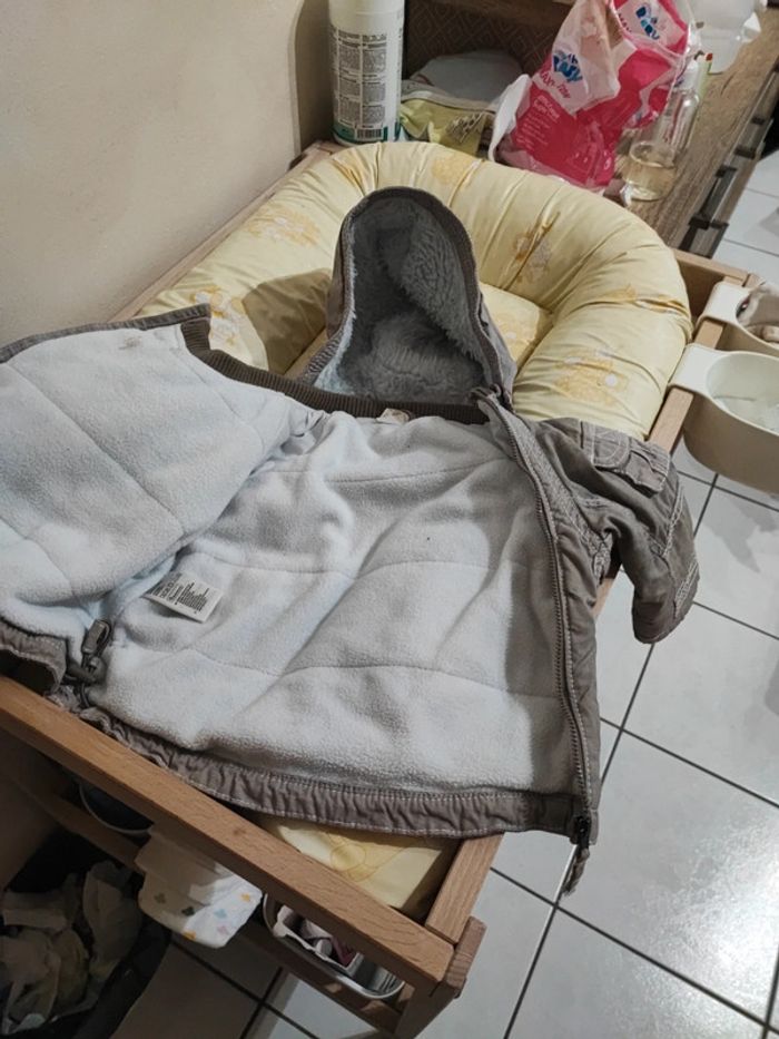 Manteau chaud pour l'hiver avec capuche detachable, resserrage possible a la taille .6- 9 mois