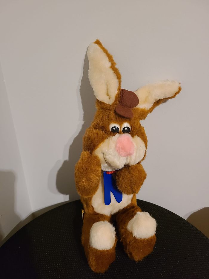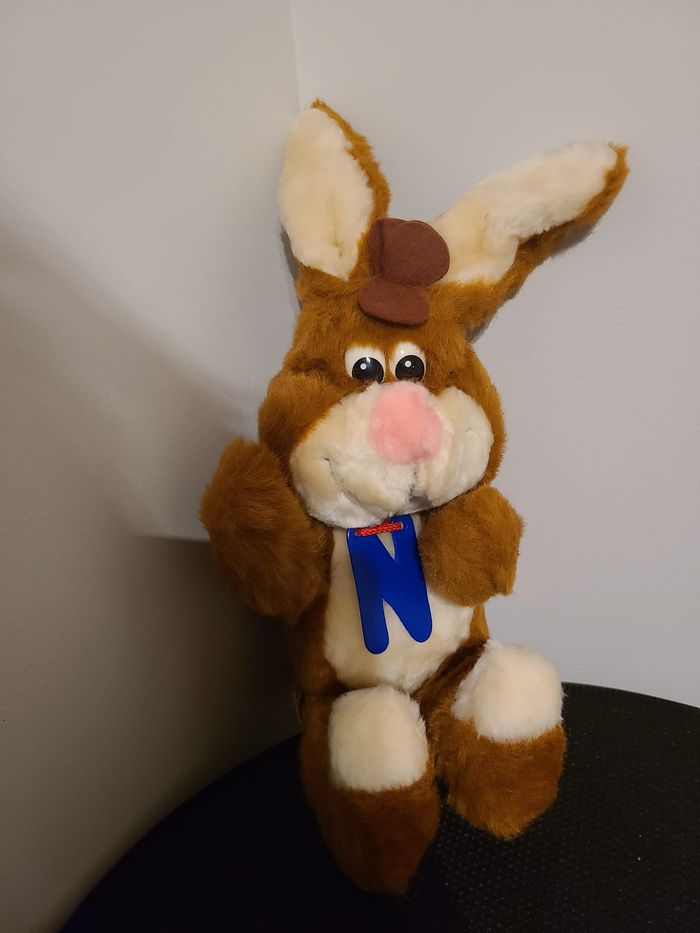 Une jolie peluche en forme du lapin qui fait la publicité du Quik de marque Nestlé des années 2000. vintage 81