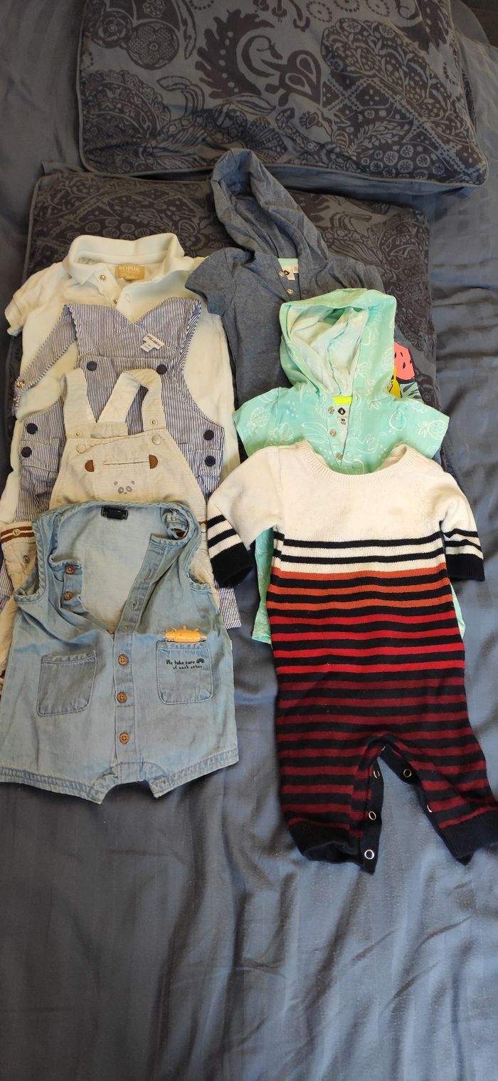 Lot de 7 barboteuses/salopettes taille 3 mois BON ETAT Différentes marques : Jacadi/ Z/KIABI/P'TIT BISOU/ OBAIBI/ SOPHIE LA GIRAFE