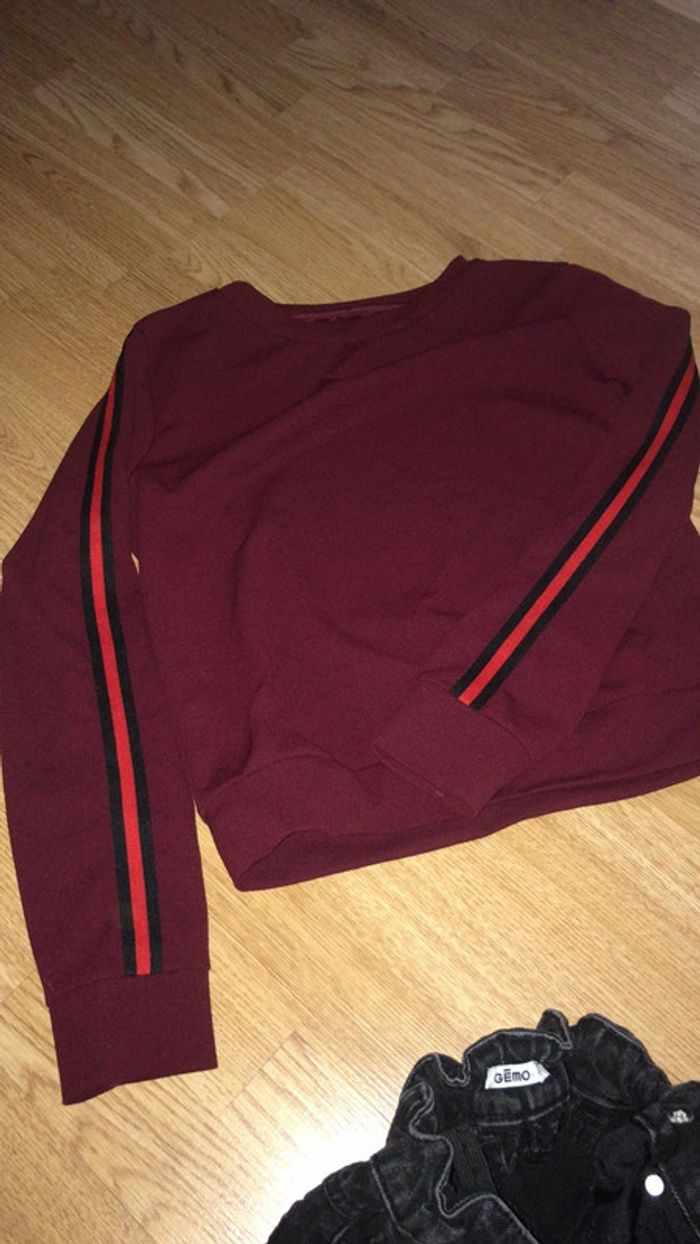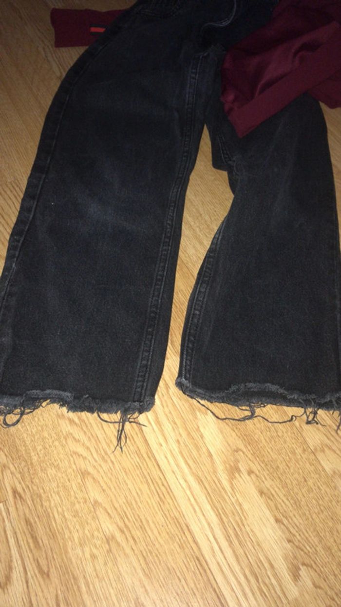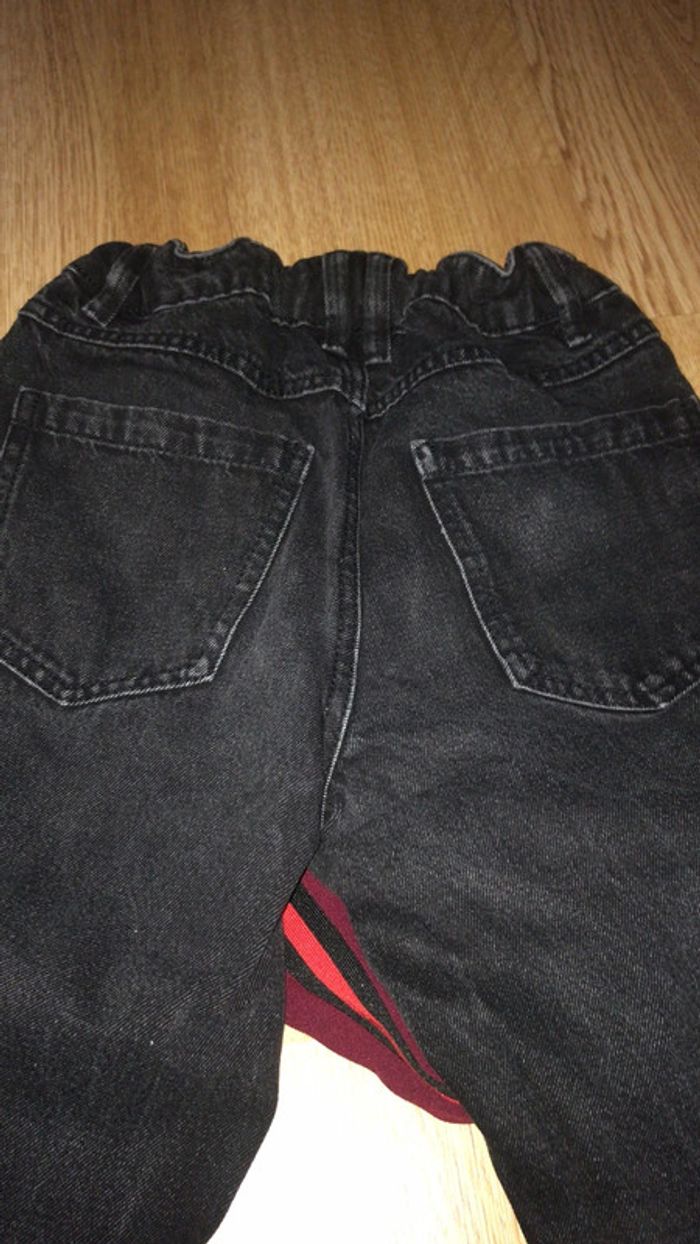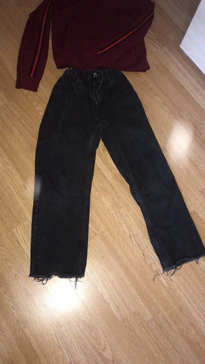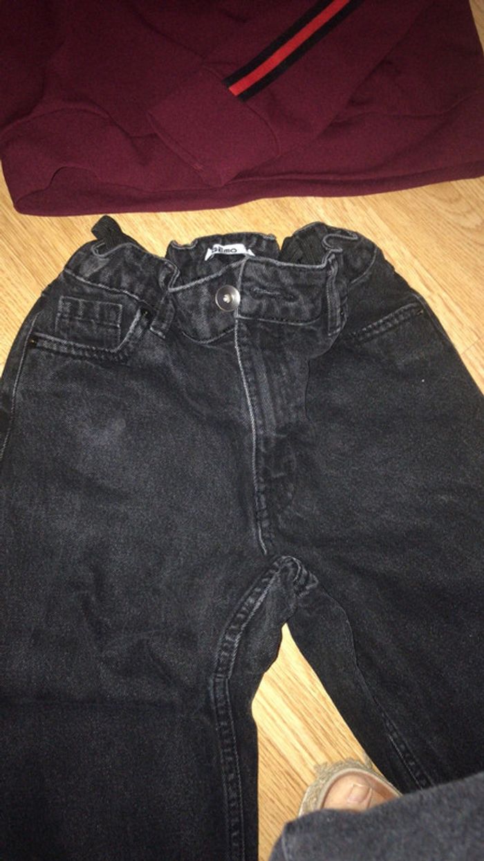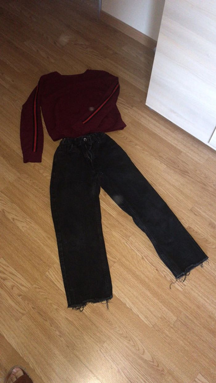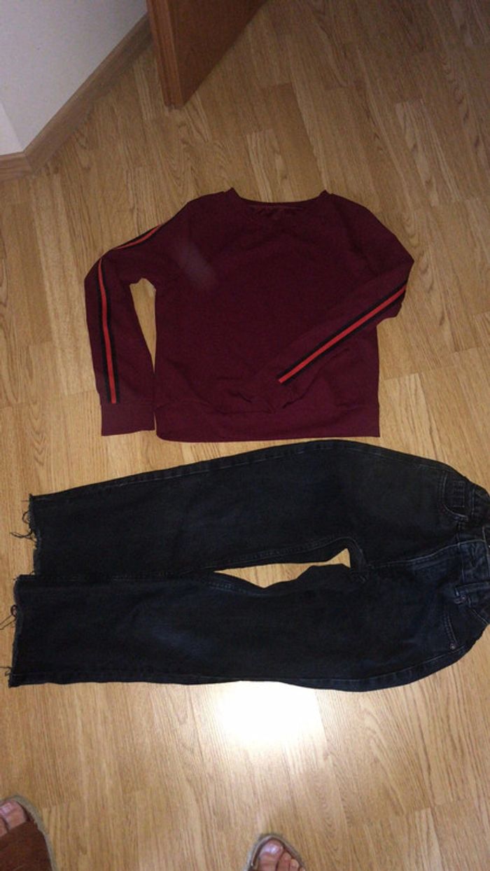 Lot jeans noir et pull rouge à bande latérale 12 ans
