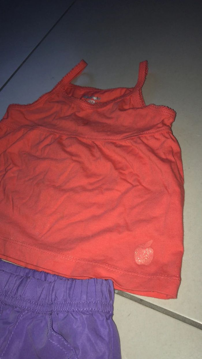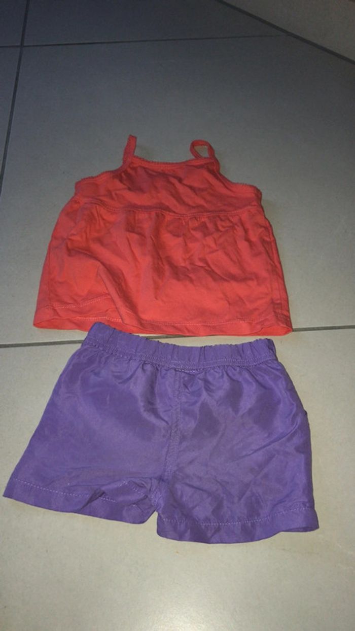 Lot 2 pièces short violet et débardeur orange corail 2 ans