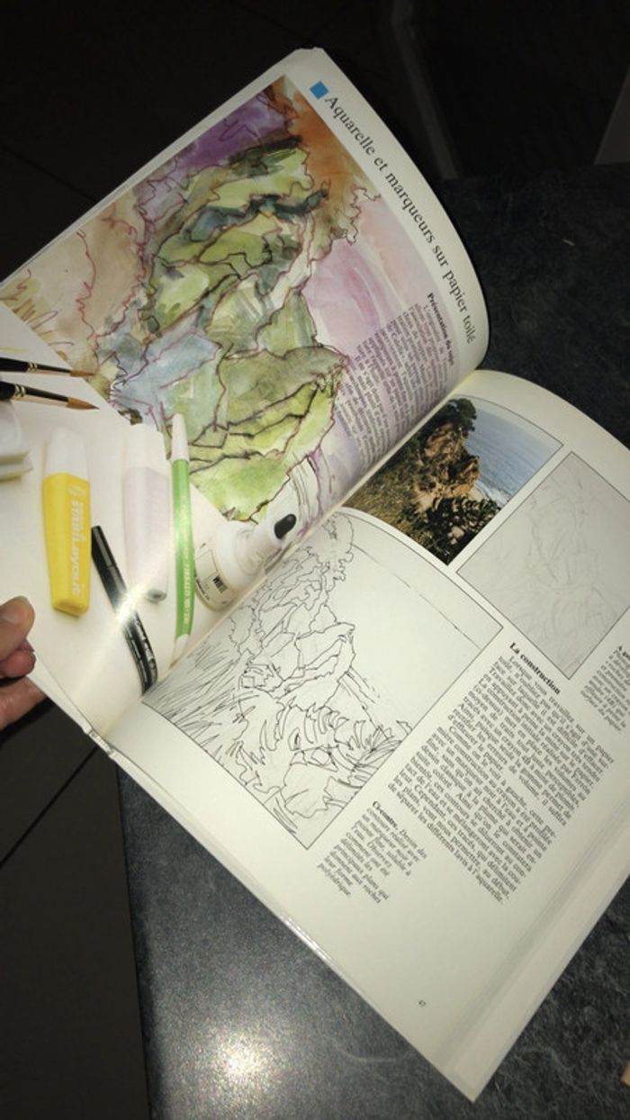 Livre de cours complet de peinture , couverture rigide format A4 et 3 pinceaux