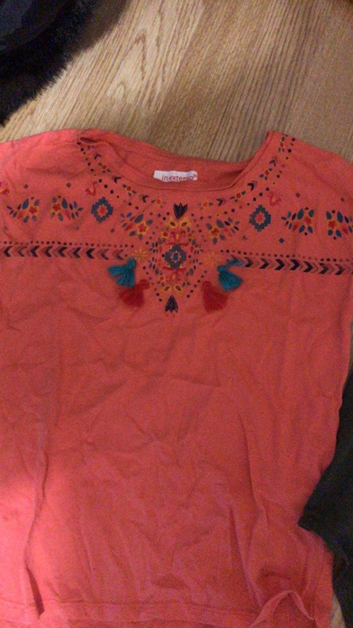 Lot 2 t-shirt kaki à nouer et orange corail à ponpon 10 ans - photo numéro 3