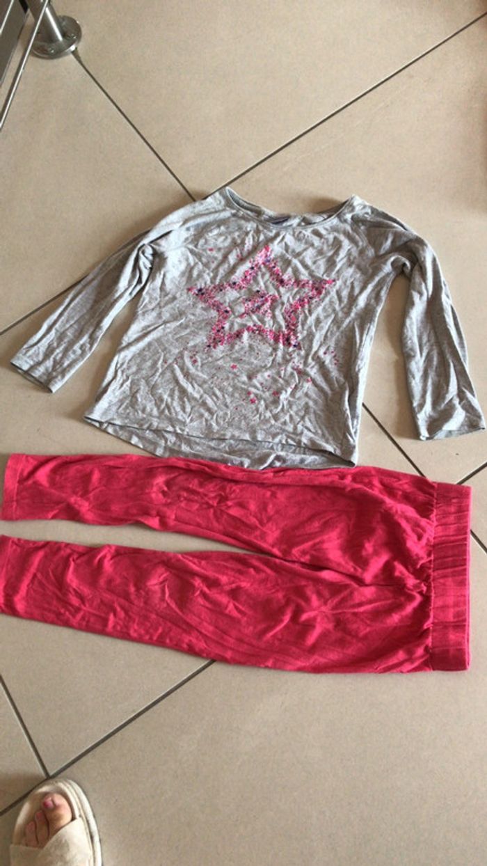 Ensemble pyjama legging rose et t-shirt manches longues gris motifs étoiles 8 ans - photo numéro 1