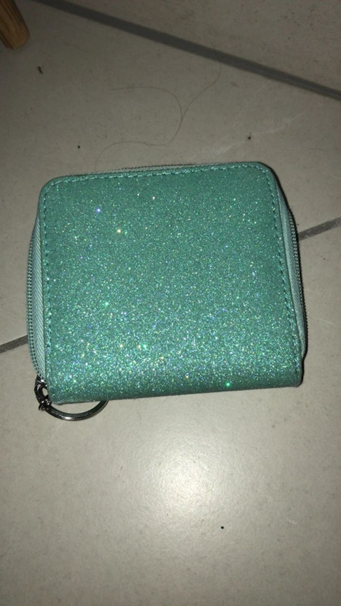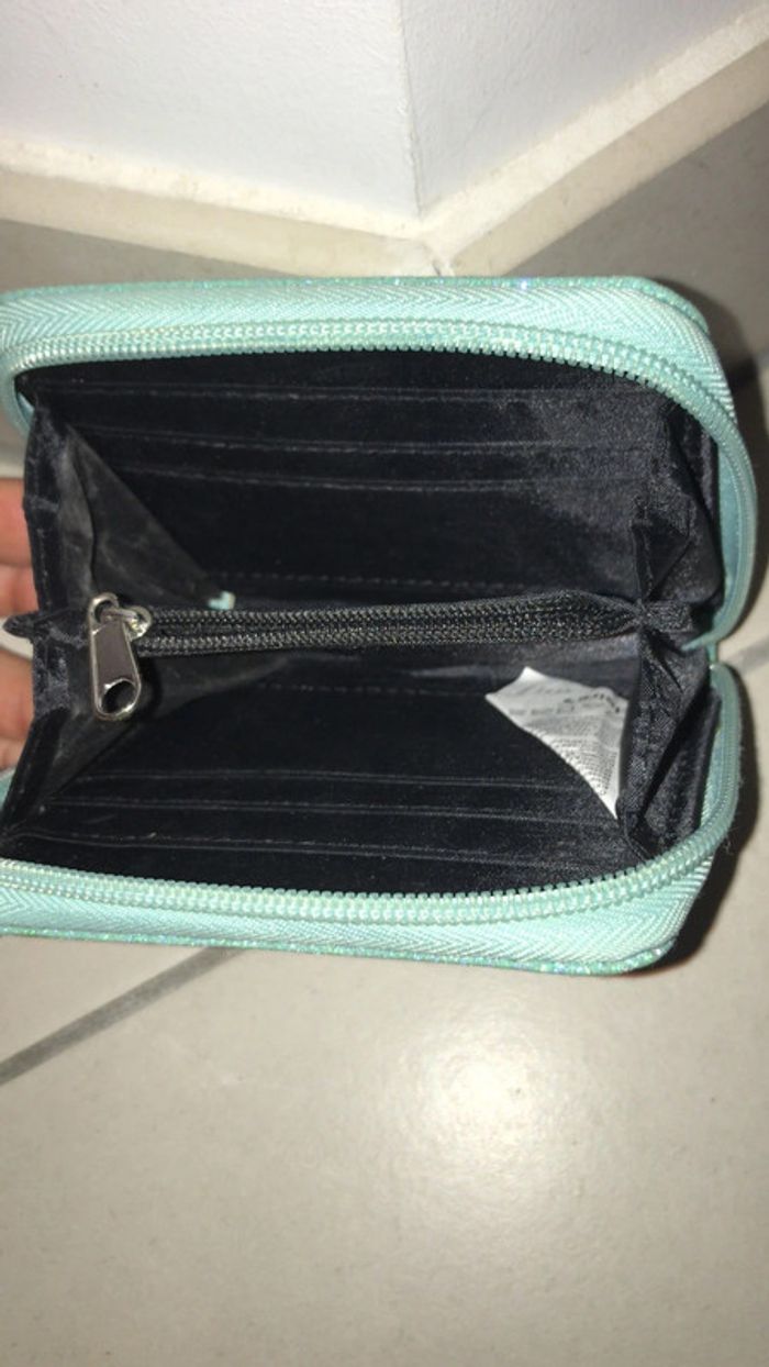 Porte monnaie et range cartes bleue turquoise pailleté - photo numéro 2