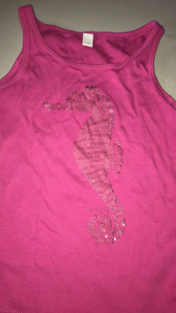 Débardeur rose motif hippocampe pailleté 6-7 ans, marque Esprit, comme neuf ( porté 1seule fois)