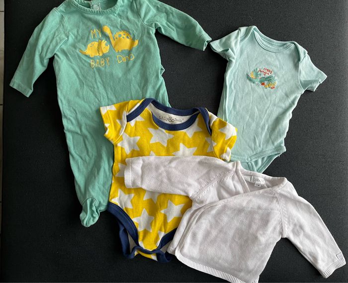 Lot de vêtements, garçon, taille un mois un pyjama léger, deux body, une brassière