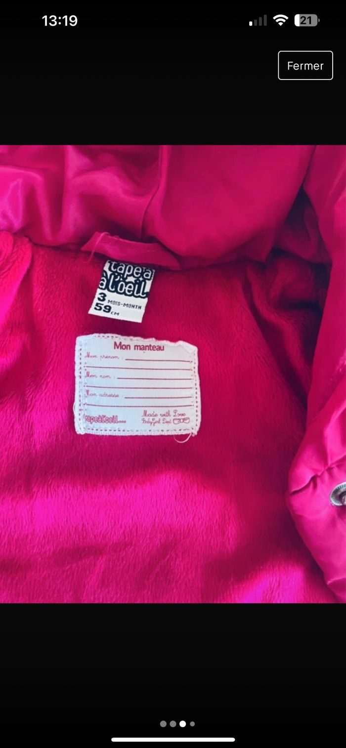 Jolie doudoune hiver neuve tape à oeil 3-6mois - photo numéro 3