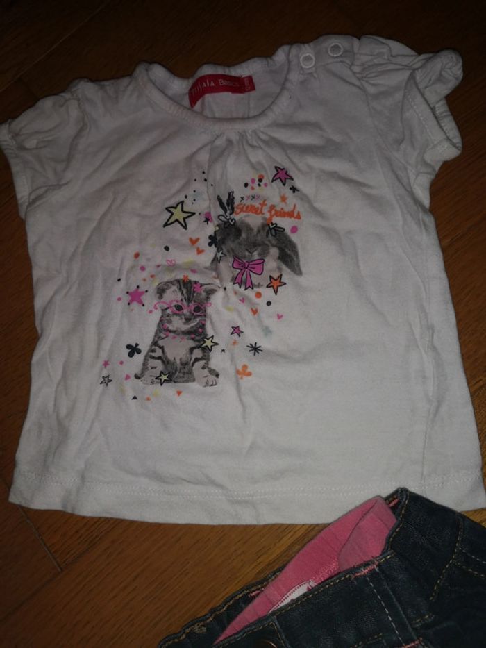 lot t-shirt + jupe en jeans + leggings marque tissaia, kitchoun, kimbaloo