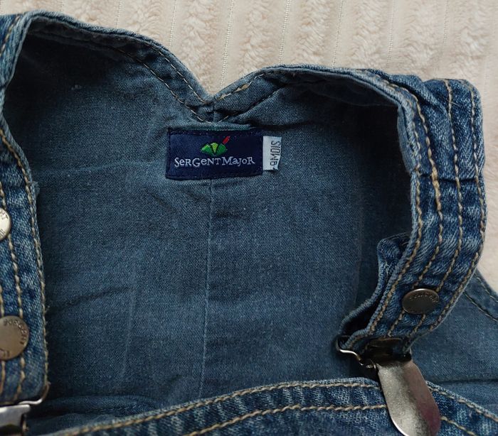 Salopette 9 mois, Sergent major Bleu, en jean Fermeture bretelles 2 positions 2€