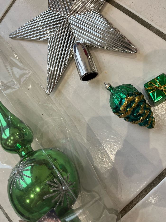 👋🏻BONJOUR ET BONNE VISITE👋🏻 🌈État : bon état 🌈Composition 4 articles : ➡️1 pique de sapin ➡️1 étoile ➡️1 pomme de pin ➡️1 cadeau 🌈Maison non fumeur 📦Envoi par Mondial Relais dans les 24H📦 🏷Un lot = réductions automatiques🏷 ♻️Dressing trié dans mon profil♻️ 📲N’hésitez pas à me contacter📲