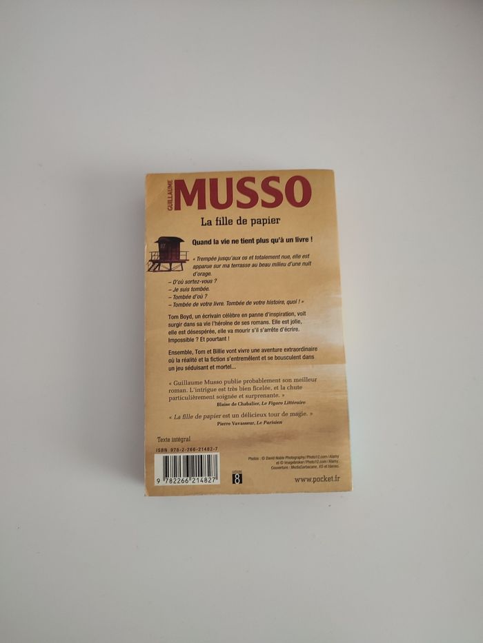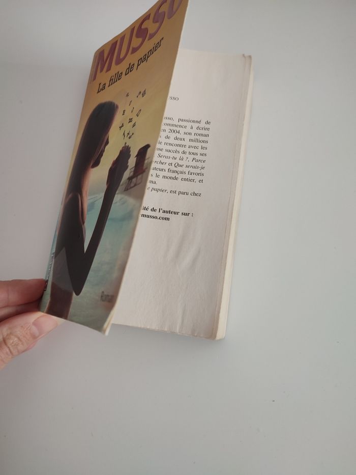 Livre de poche Musso La fille de papier En bon état car couverture légèrement corné au dos. Et quelques pages du début (2 ou 3 pages) abîmé.
