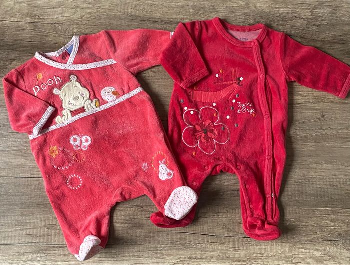 Lot de 2 pyjamas en bon état Taille 1 mois , l’un de la marque Disney baby et l’autre sucre d’orge