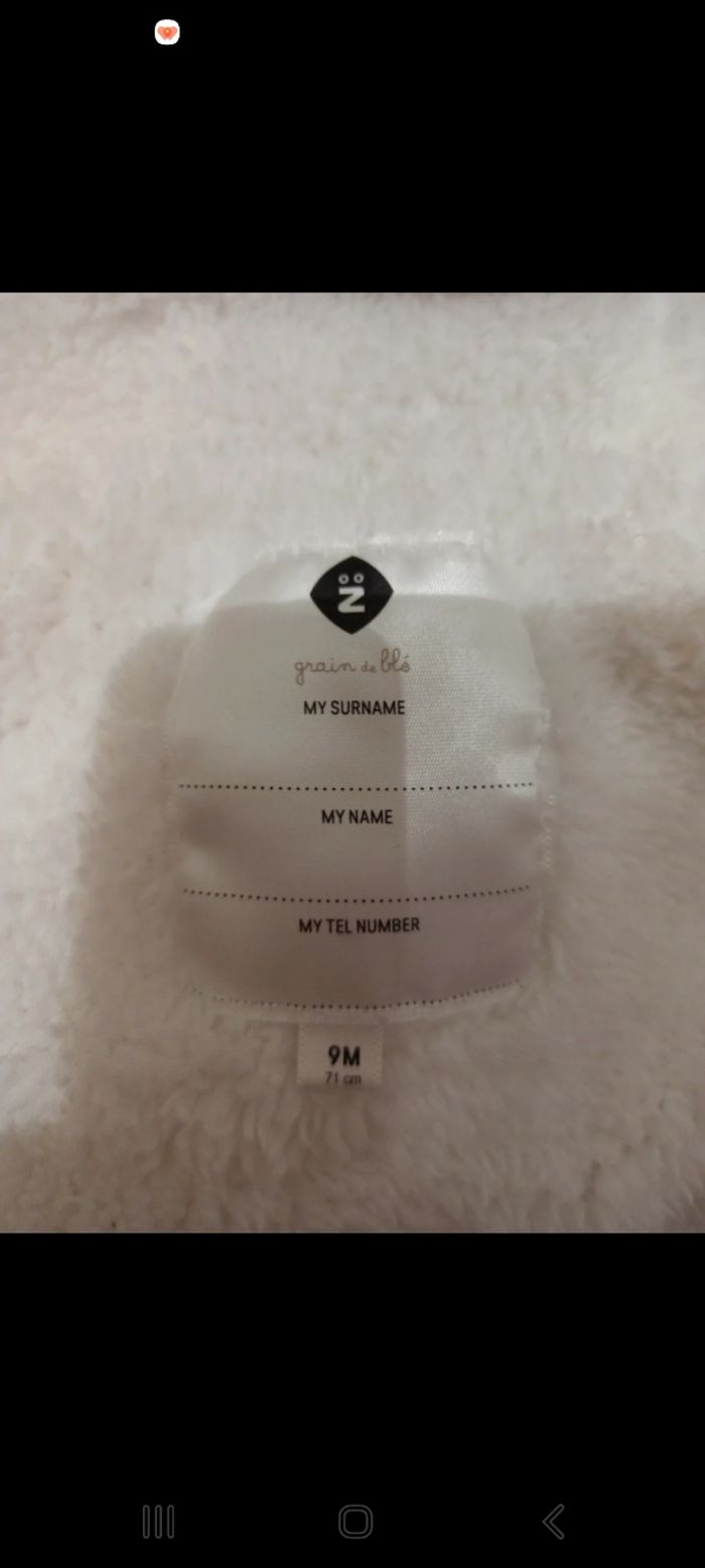 Combinaison ski taille 9 mois avec mains et pieds intégrés Grain de