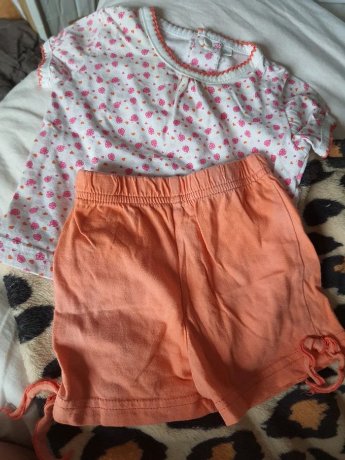 Ensemble short + t-shirt taille 3 mois, jauni au col