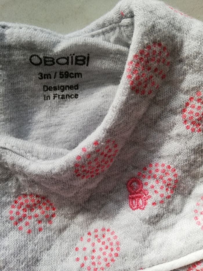 Robe grise avec motifs rose. Fermeture pressions au dos. Très peu porté. Très bon état.