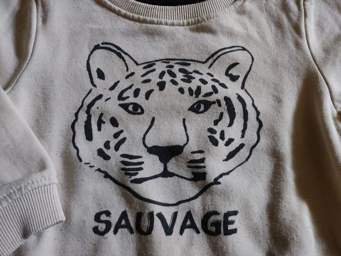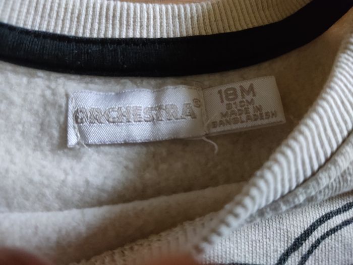Sweat en très bon état. Couleur beige. Taille 18 mois. Marque Orchestra