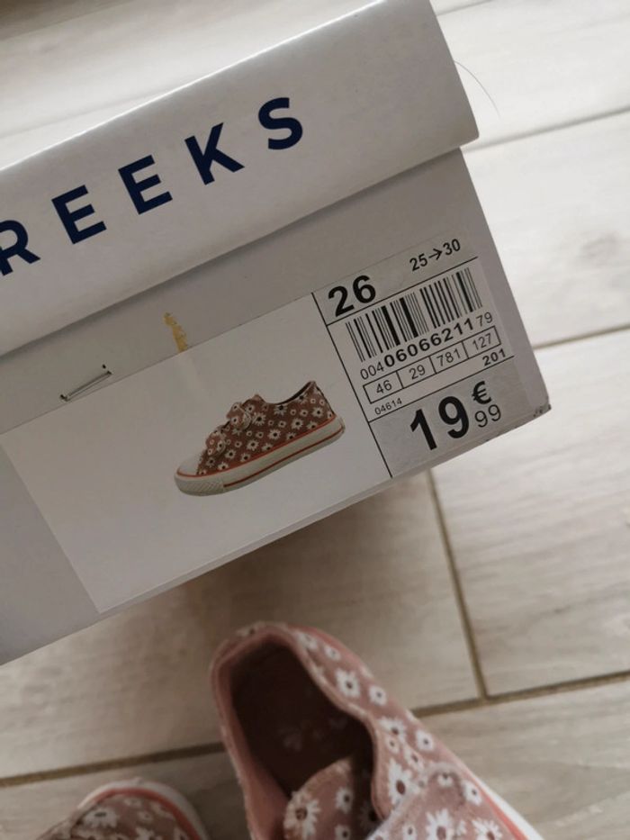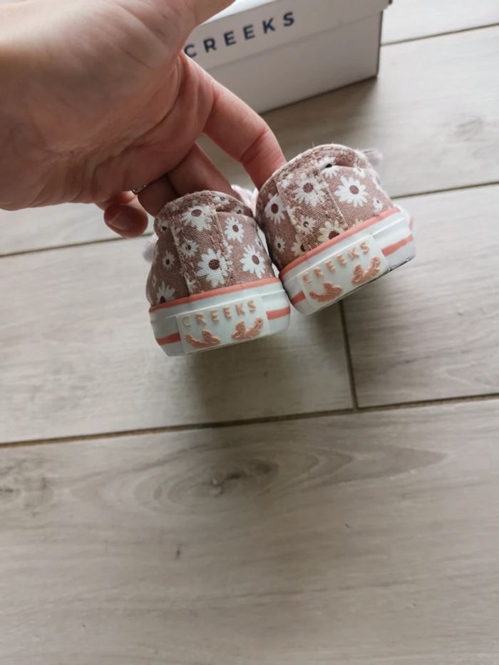 Basket CREEKS Roses à fleurs Très bon état sauf liseré rose un peu parti sur le devant (photo 2 et 3) Avec sa boîte d'origine