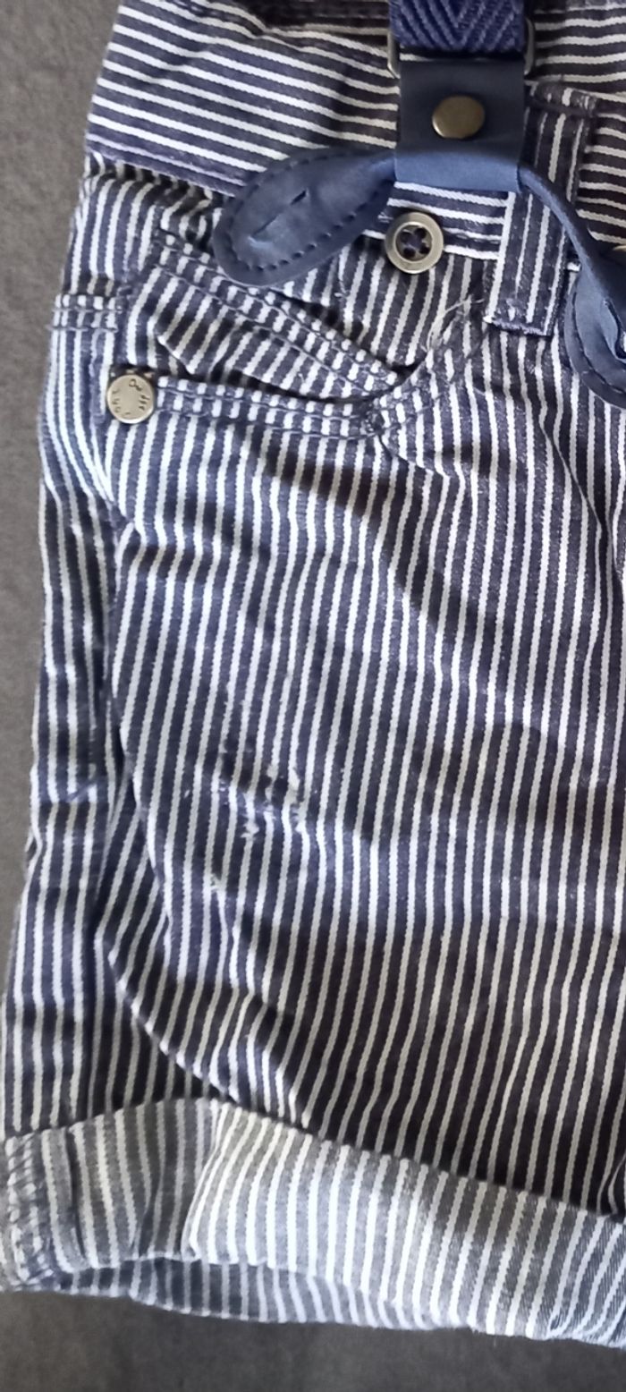 Je vend un short en taille 6 mois avec bretelle. Peu porté. Défaut de couture sur une jambe voir photo.