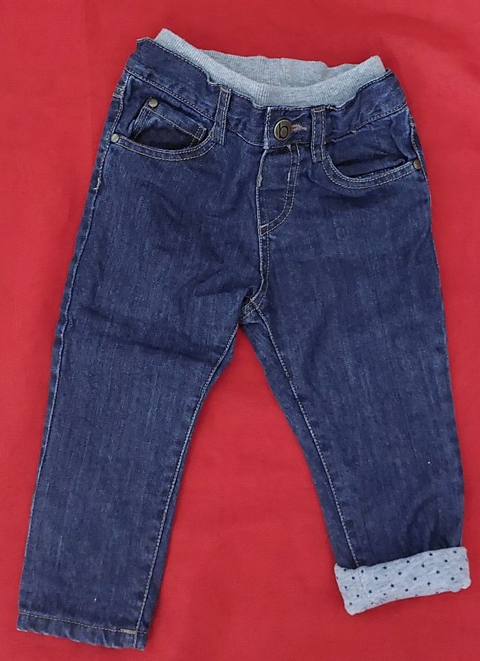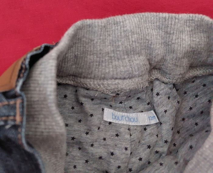 Pantalon jean 12 mois, bout'chou Bien doublé a l' intérieur coton gris Taille élastique , marine 2€50