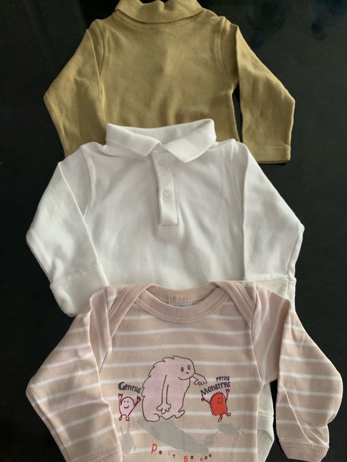 Lot de trois body manches longues, neuf petits bateaux, 100 % coton dégrif