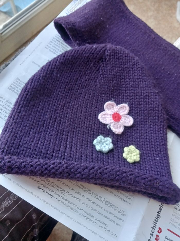 Ensemble bonnet et écharpe Bon état général juste boulocher 50 cm Aubergine 🍆