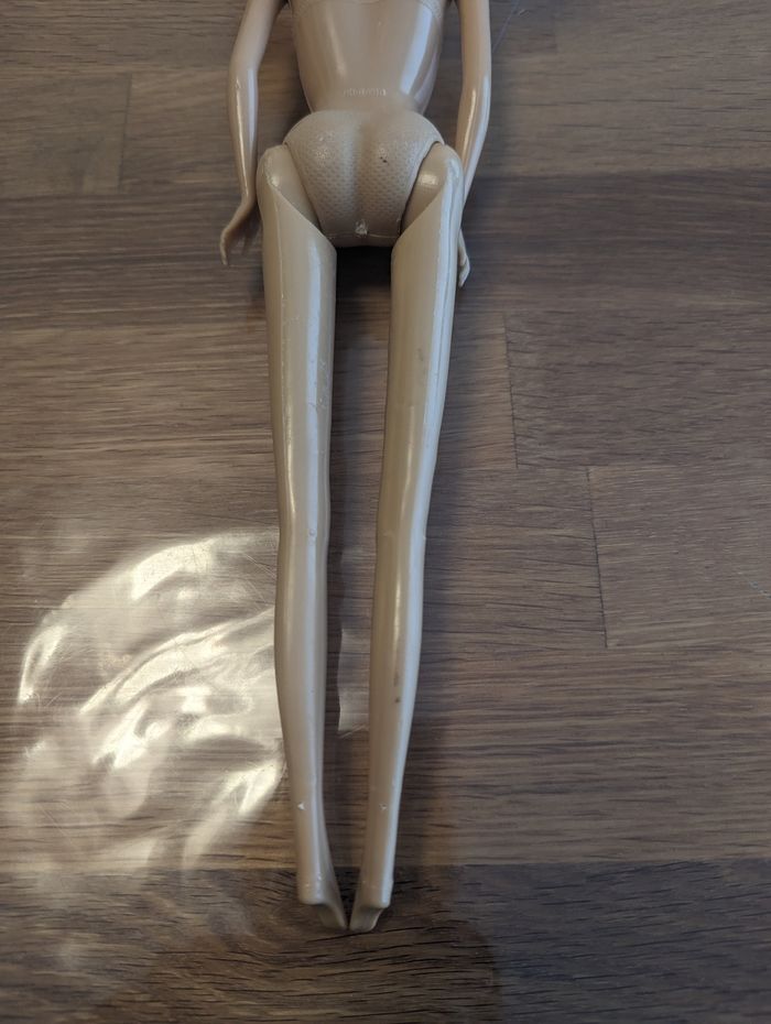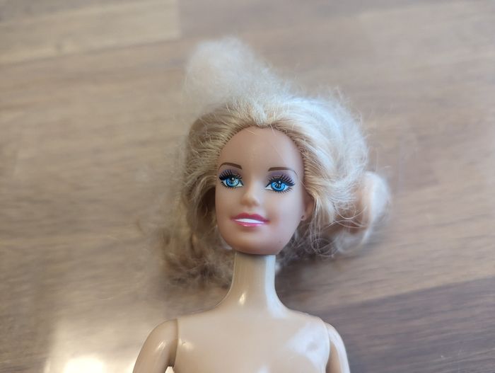 Poupée environ 30 cm Bon état, quelques traces sur le corps, cheveux crépus.