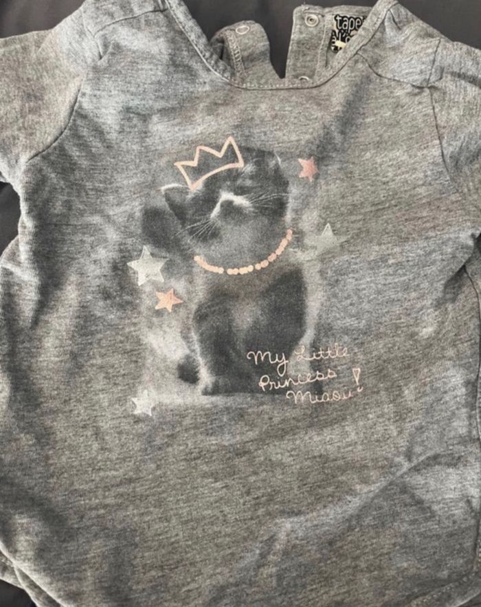Ensemble 9 mois/71 cm Pantalon marine et t-shirt manches longues avec chat