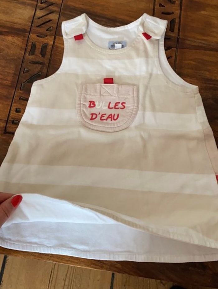 lot de 2 salopettes robes beiges 6 mois comme neuve rayée 6 mois comme neuve sergent major