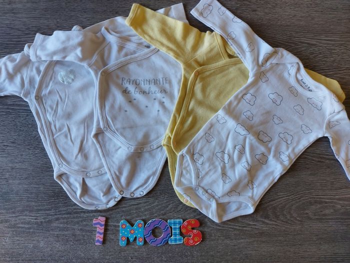 Lot de 4 bodies manches longues. 1 mois. Multi marques. 3 avec ouverture sur l'avant.