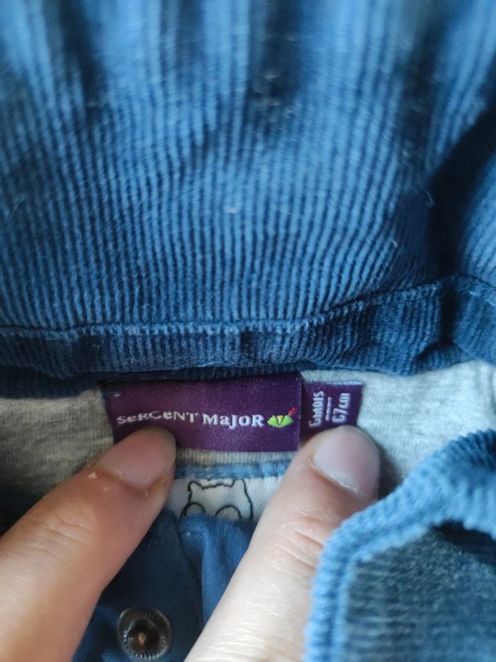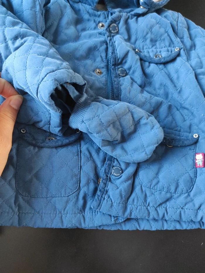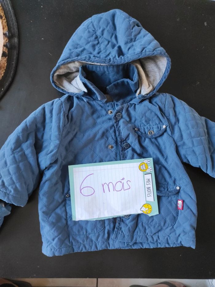 Manteau mi sains avec moufle fine Bleu Sergent major 6 mois Bon état