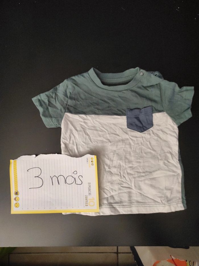 Tee short vert et blanc avec petite poche devant Vertbaudet 3 mois Très bon état ( porté une fois )