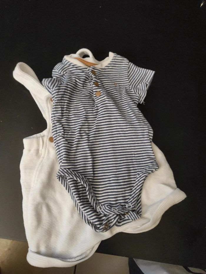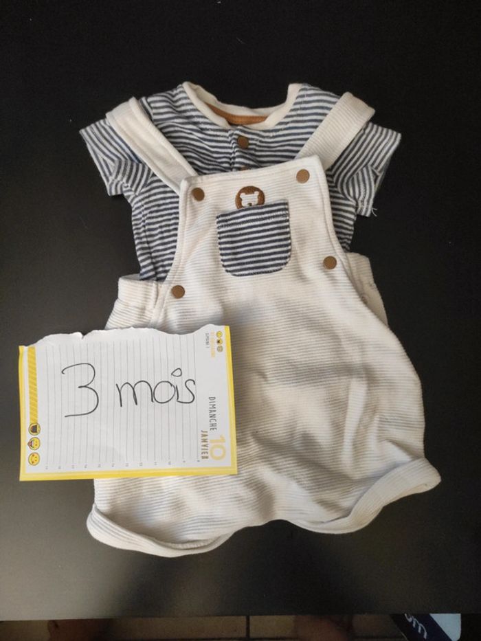 Ensemble salopette et body manche courte Obaidi 3 mois Très bon état , Petite tache très discret sur la salopette ( voir dernière photo )