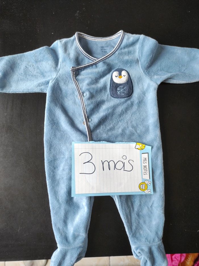 Pijama bleu Avec pingouin Obaibi 3 mois Bon état