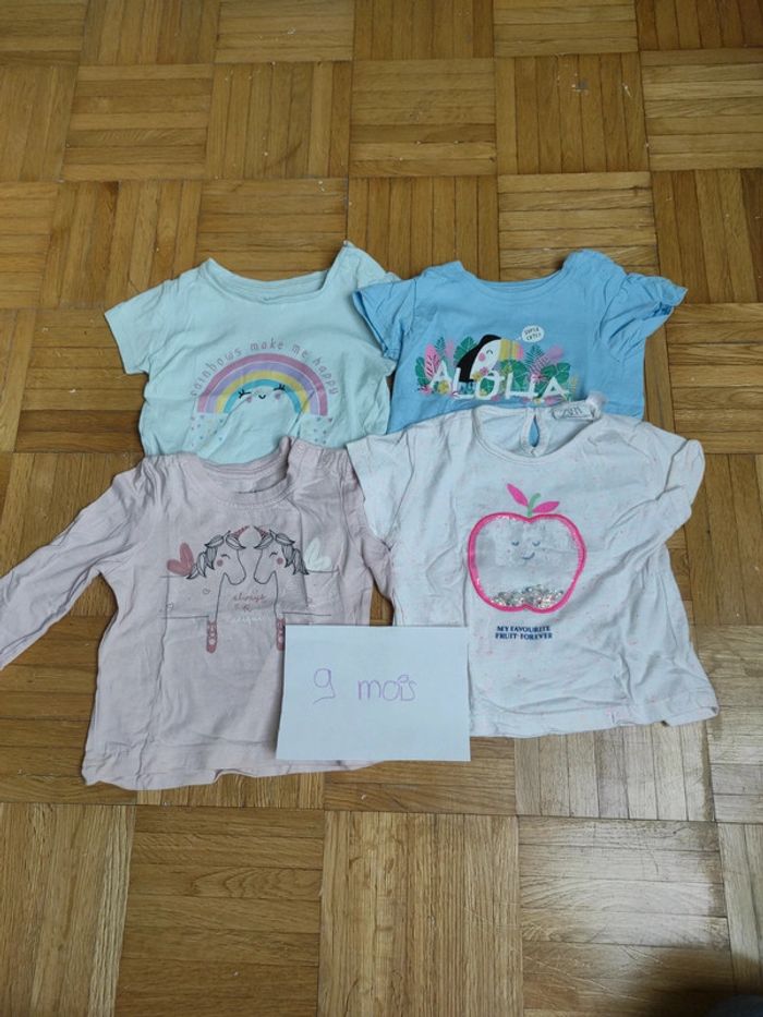 Lot de 3 tee short et 1 manche longue Tout de Primark sauf la pomme de Zara 9 mois . Bon état