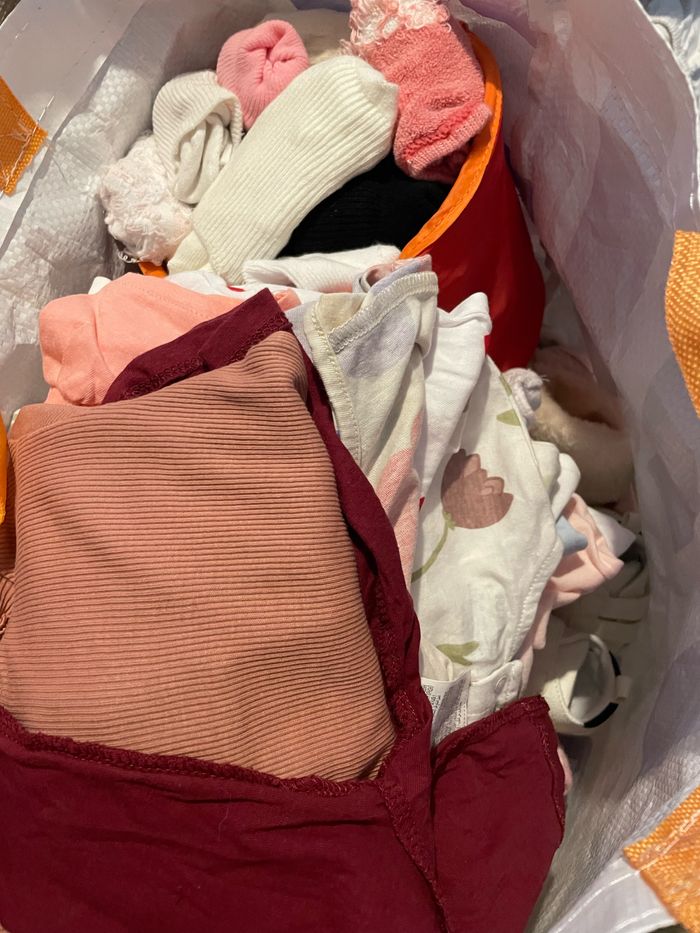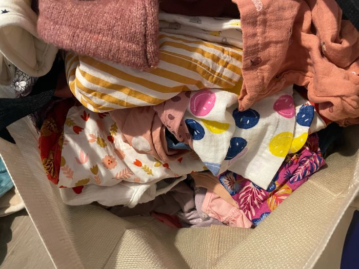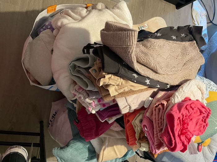 Lot de 350 pièces vêtements bébé file (vêtements en tous genre, chaussettes, chaussures, chapeau, bonnet, draps pour matelas cododo et matelas à langer) L’ensemble des vêtements font 25kg et l’envoie via mondial relay à ce tarif est à 34,90€ (le prix tient donc compte de ces frais d’envoi car 15 kg sont prévus par beebs) Je vend l’ensemble Bcp de marques : Lévis DPaM Okaidi Tape à l’œil Kiabi Galériez Lafayette Bout’chou tailles du 0 au 6/9 mois. ⚠️le colis pèse 25 kg le prix mondial relay est de 34,90€⚠️