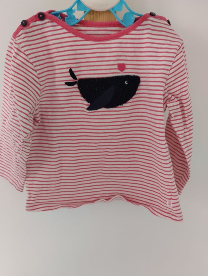 T shirt manches longues, boutons aux épaules. Taille 18 mois. Obaibi. Très bon état.