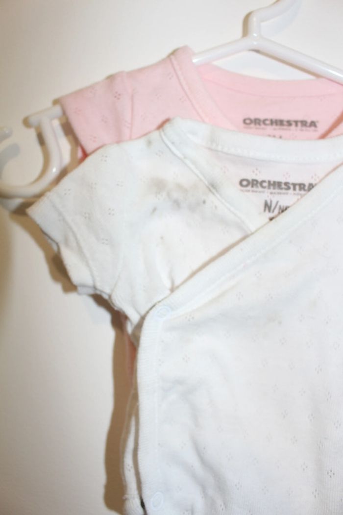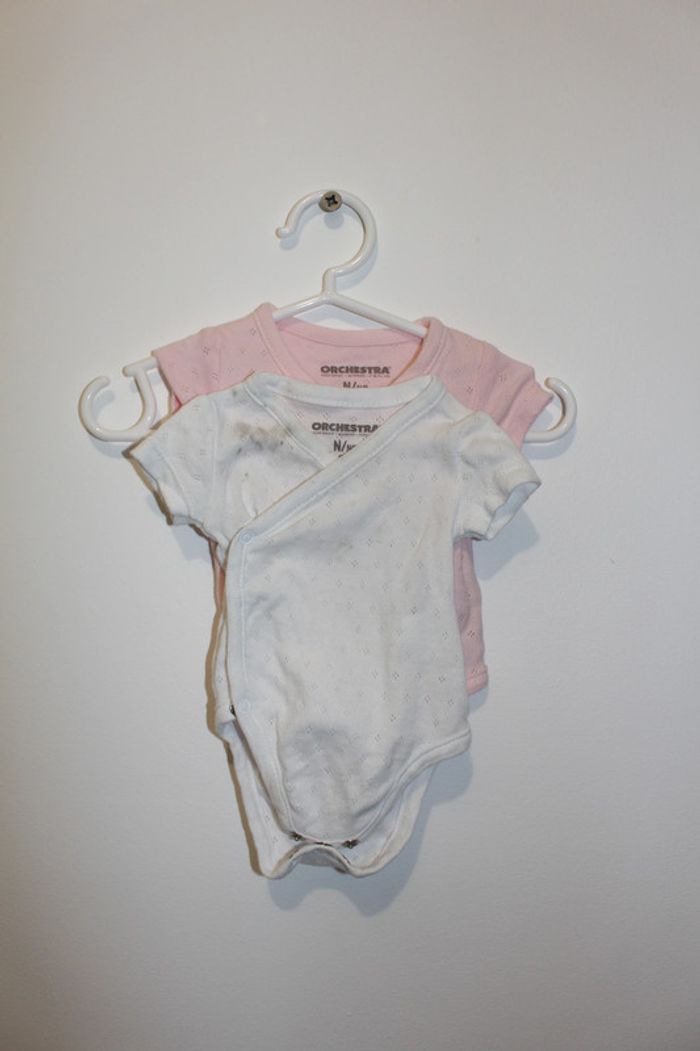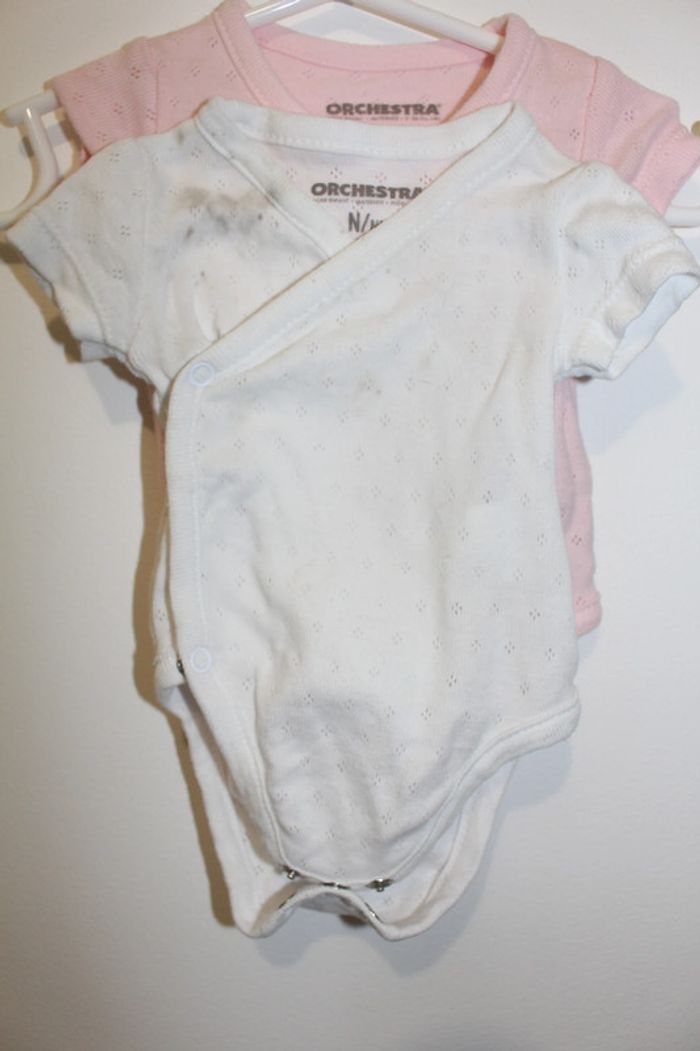 body fille le rose es en très bon état, le blanc présente des tâches ( possible de les enlever avec un bon détachant je pense)
