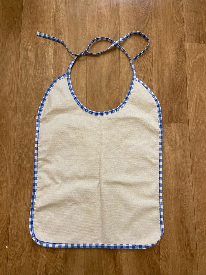 Grand bavoir coton carreaux bleus Longueur 50 cm Largeur 36 cm Verso matière imperméable Très bon état juste légères traces à certains endroits qui ne sont pas parties très discret