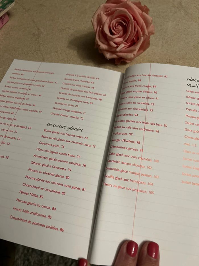 Très beau, recueil de recettes de glaces, sorbets et douceur glacée (plus de 100 recettes) livre en parfait état. Envoi rapide et soigné.