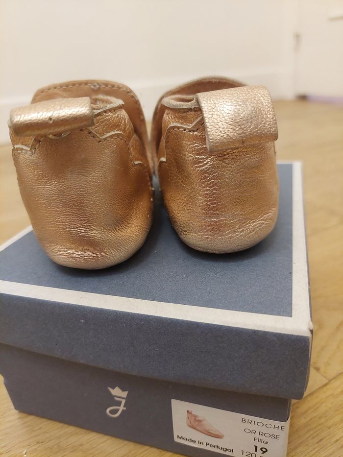 Tbe Pantoufles jacadi T19 Modèle Brioche Or rose Idéal premiers pas Prix neuf 49€ Marques d'usures devant et derrière voir photos : le doré est un peu estompé
